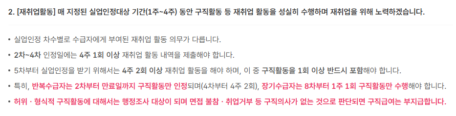 수급 자격 인정 교육: 구직등록 후 일정 교육을 수료해야 실업급여를 신청할 수 있습니다.